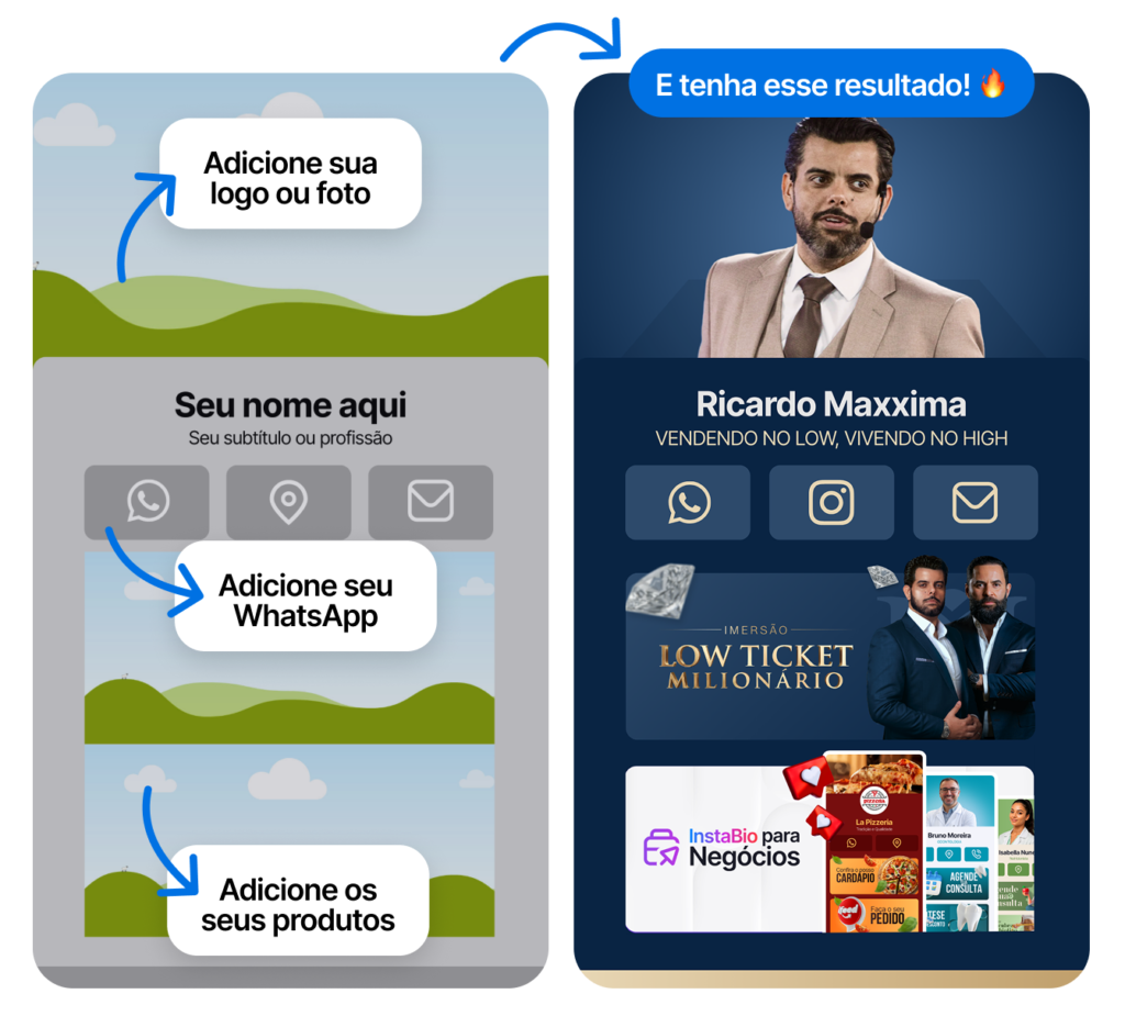 Você garante o seu Pack InstaBio para Negócios, profissionaliza seu perfil e monta uma bio bonita e que reúne tudo que você precisa.